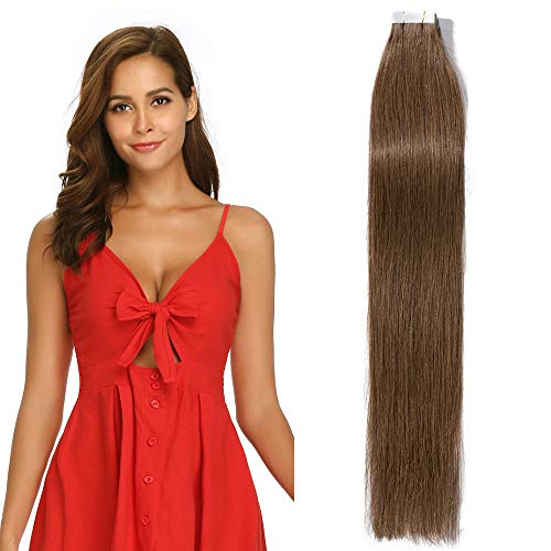 Rich Choices 50cm Extension Capelli Veri Biadesivo #6 Marrone Chiaro Remy Capelli Umani Brasiliani Tape Extension Adesive 20 Pieces 50g/pack