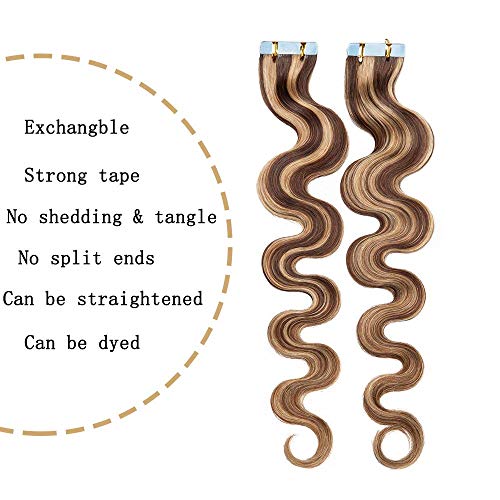 Rich Choices Extension Capelli Veri Biadesivo Mossi Tape in Hair Extension Adesive Remy Human Hair 40g/set 20PCS, 35cm #4/27 Marrone Cioccolato/Biondo Scuro