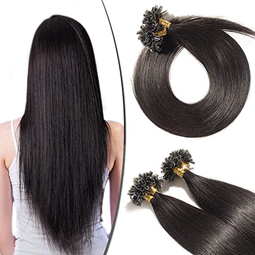 Rich Choices 40cm Extension Capelli Veri Cheratina 200 Ciocche 100g/Pack U-Tip Allungamento Remy Human Hair Naturali, 1B# Nero Naturale