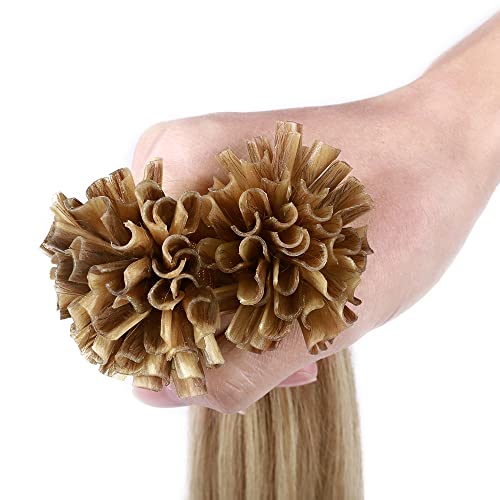 Rich Choices Extension Capelli Veri Cheratina con Meches 1 Grammo Lunga 40cm Pesa 50g/pack U Tip Remy Hair Naturali Lisci, 12/613 Marrone Chiaro/Biondo Chiarissimo