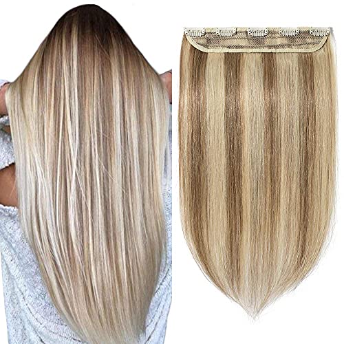 Rich Choices Extension Clip Capelli Veri Fascia Unica One Piece Remy Human Hair Lunga 60cm Pesa 60g, 12/613 Marrone Chiaro/Biondo Chiarissimo