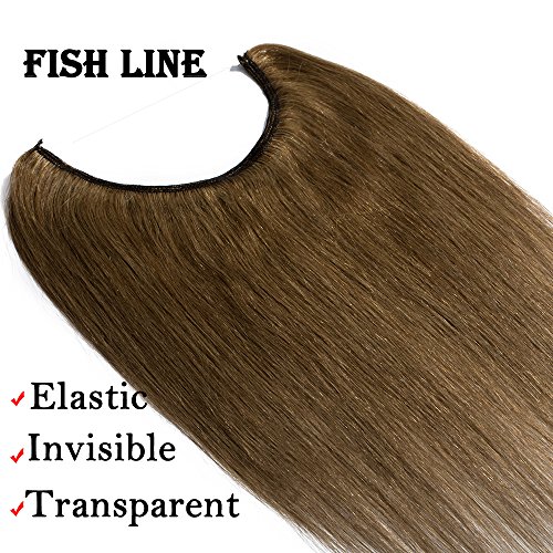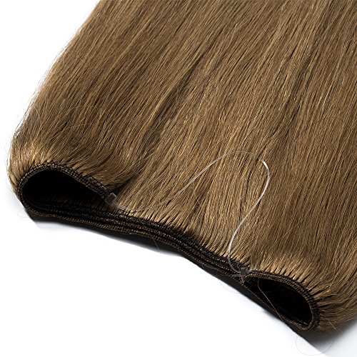 Rich Choices Extension Capelli Veri con Filo Trasparente Pezzo Unico No Clip Wire in 100% Remy Human Hair Lisci Lunga 40cm Pesa 60g, 6 Castano