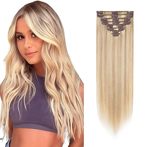 Rich Choices 40cm Extension Clip Capelli Veri Clip in Hair Extension Capelli Umani Brasiliani Pesa 90g, 18P613 Biondo Cenere&Biondo Chiarissimo