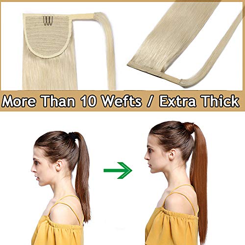 Rich Choices Extension Coda di Cavallo Capelli Veri Clip Ponytail 100% Remy Human Hair Fascia Unica Allungamento Naturali Umani (50cm 95g #60 Biondo Platino)