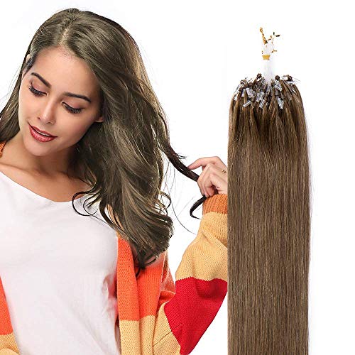 Rich Choices 55cm Extension Microring 100 ciocche #6 Castano Capelli Veri con Anelli Capelli Umani Brasiliani, Peso 50g
