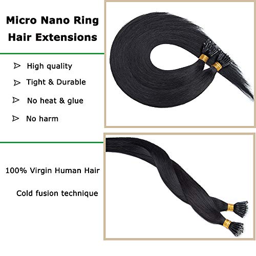 Rich Choices 45cm Microring Extension Capelli Veri con Nano Ring 1g/ciocca Allungamento Capelli Umani Lisci Pesa 50g, 1 Jet Nero
