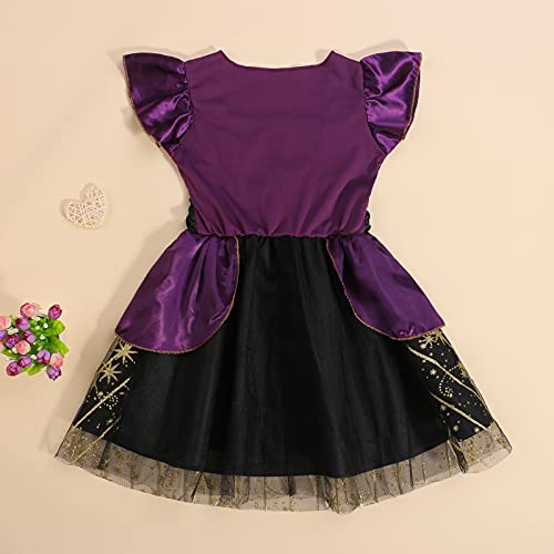 Chollius Costumi Strega Bambina Costumi Halloween Strega 2 Pezzi Abito Tulle Bamina Strega Carnevale Vestito Pizzo Ragazza Manica Volant Stampa Stelle+Cappello Strega 4-12 Anni (Viola, 4-6 Anni)