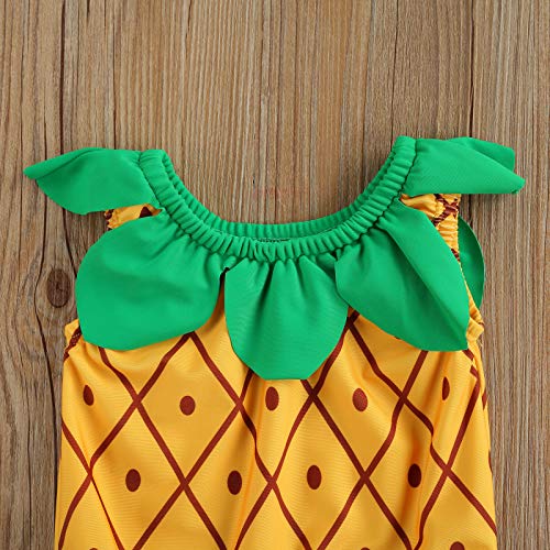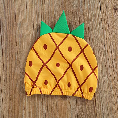 Chollius 2 Pezzi Costume da Bagno Bambini Neonate Senza Maniche Stampa Anguria Girocollo Costume Intero + Cuffia da Bagno (Giallo, L)