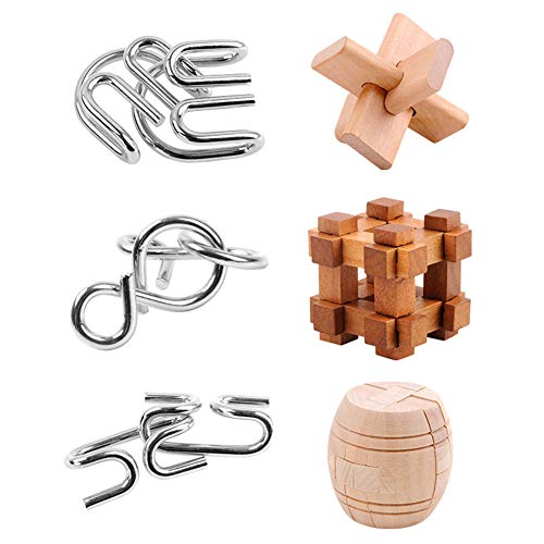Chonor 3D Puzzle del Metallo Rompicapo del Cervello in Legno Set di 6 - Gioco di Mente IQ Test Brain Teaser Giocattoli Educativi Logica Gioco di Cube per Bambini e Adulti - Regalo e Idea Decorazione