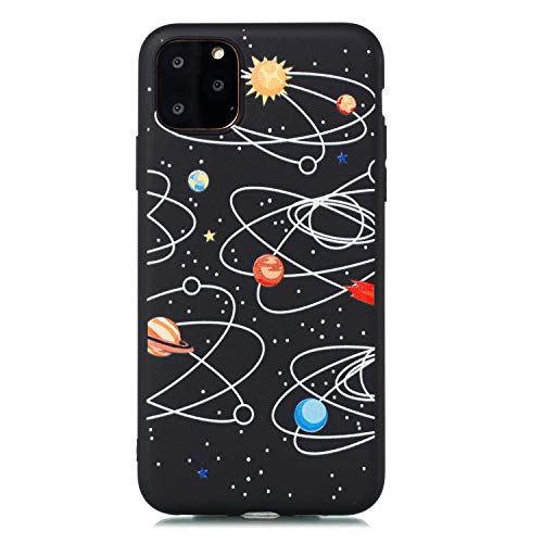 ChoosEU Compatibile con 3X Cover iPhone 11 PRO (5.8) Silicone Disegni Fiore Nero Belle Morbido Antiurto Gomma Custodia Slim Bumper Case Chiaro Protezione Sottile - Sistema Solare Universo Astronauta