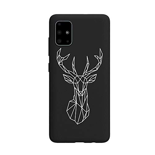 ChoosEU Compatibile con Cover Samsung Galaxy A51 Silicone Nero Disegni Colorate Custodia Morbido per Ragazze Donne Uomo, Case Antiurto Divertente Gomma Matte Slim Protezione - Cervo