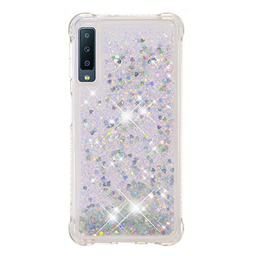 ChoosEU Cover Silicone Glitter per Samsung Galaxy A7 2018 Trasparenti Brillantini Colorate Belle Morbido Antiurto Gomma Custodia Brillante Slim Bumper Case Chiaro Protezione - Amore Argento