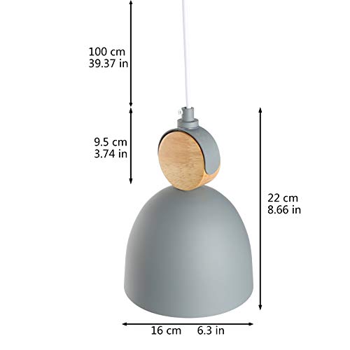 Chrasy E27 Metallo Legno Lampadario Lampada a Sospensione Moderno Plafoniera in Metallo Scandinavo Stile Lampada a Sospensione (Grigio)