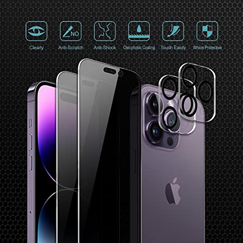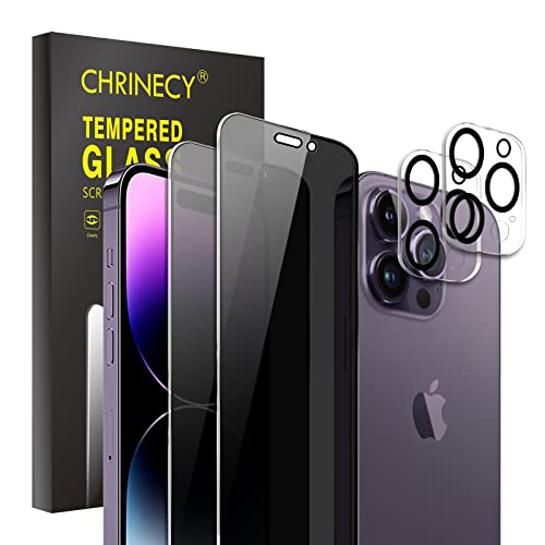 CHRINECY [4 Pezzi] Privacy Pellicola Protettiva per iPhone 14 Pro Max, 2 Pack Protezione Schermo Pellicola e 2 Pack Fotocamera Protezione Schermo Pellicola, Anti Spy in Vetro Temperato Flim