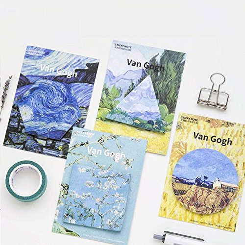 Chris Wang Sticky notes (quadrato, rotondo, di forma irregolare triangolo, esagono), VINCENT Van Gogh Collection memo note, ufficio scuola post note, 4 blocchetti da 120 fogli
