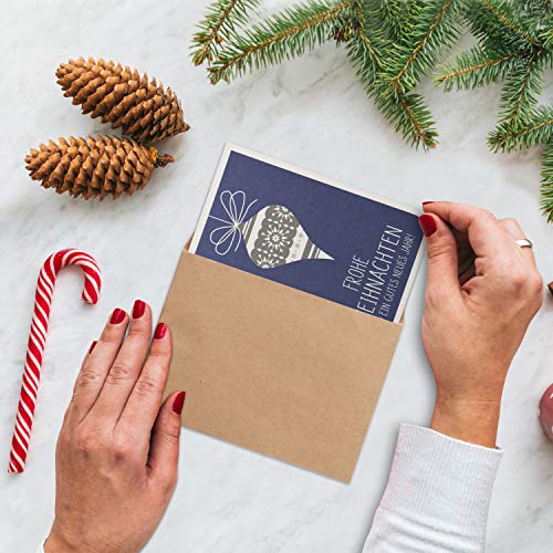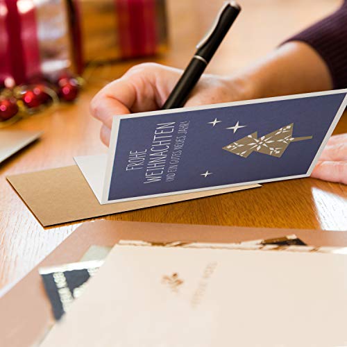 FROHE WEIHNACHTEN: Each card features the words “Frohe Weihnachten und ein Gutes Neues Jahr” on the front (“Merry Christmas and a Happy New Year” in German) The font featured is beautiful and bold. Give this card to all your friends and family this Christmas.