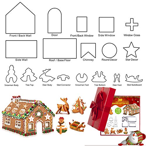 Christmas Cookie Cutters / 18 Pezzi Gingerbread House di Natale / 3D Casa di Marzapane Formine per Biscotti / Inossidabile per Biscotti Stampo da Cucina Adatto per la cottura di biscotti