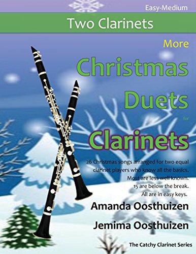 More Christmas Duets for Clarinets: 26 Christmas songs arranged for two equal clarinet players who know all the basics. Most are less well known. 15 are below the break. All are in easy keys.