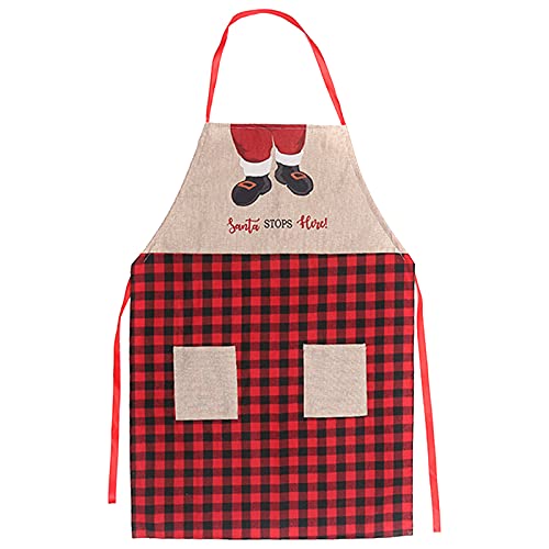 Christmas Grembiule Grembiule Cucina In Lino Unisex Grembiule Natalizio Accessori Da Cucina Grembiule Per Uomo Donna Per Lavoro, Barbecue, Giardinaggio, Artigianale, Cottura(Griglia Rossa e Nera)