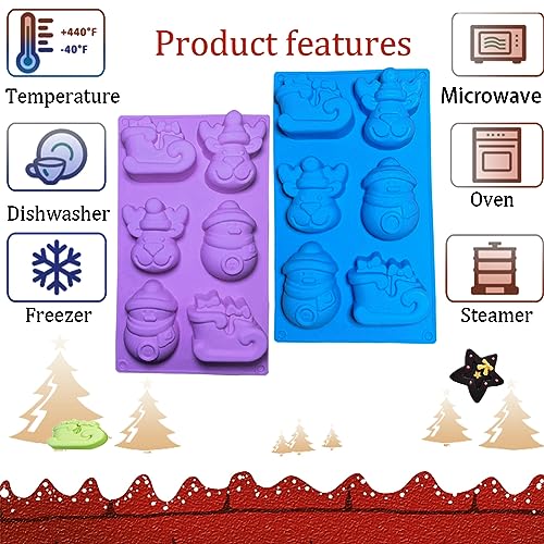 Christmas Stampini In Silicone- 2pezzi, Blu e Viola | Stampi In Silicone, Forme Babbo Natale, Renna, Pupazzo Di Neve, Albero Di Natale, Adatto Per La Preparazione Di Dolci Natalizi e Diy Progetti