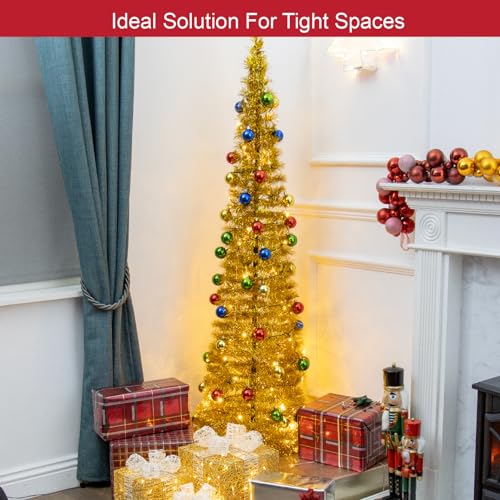 The Christmas Workshop 88210-Albero Illuminato, Natale Artificiale Dorato, Albero Pop-up Pre-Decorato, lampadine LED Bianco Caldo e 60 Palline, Oro, 182 cm