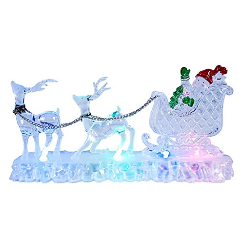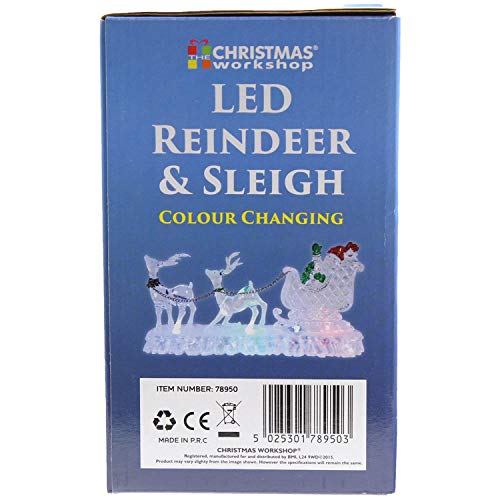The Christmas Workshop - Decorazione Natalizia a Forma di Slitta con Renne, in Materiale Acrilico, Funzionamento a Batteria, con luci Che cambiano Colore