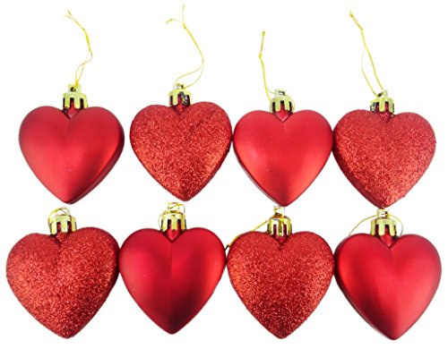 Christmasshop 8 x 5cm Red Glitter + Matt Cuore a Forma di Albero di Natale Baubles