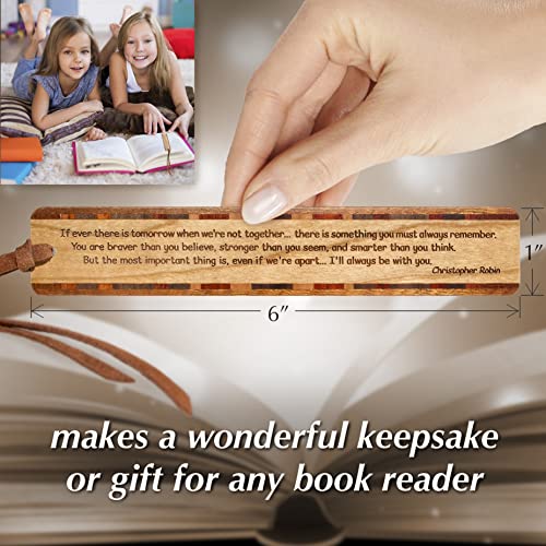 Christopher Robin Quote Engraved Wooden Bookmark on Cherry with Brown Suede Tassel