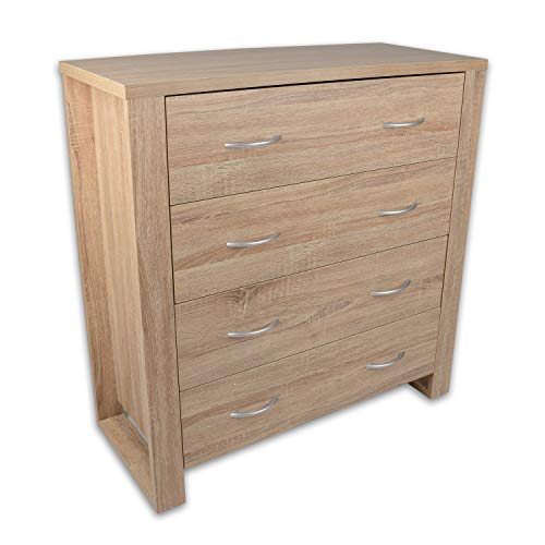 Christow - Mobile cassettiera a 4 cassetti, effetto quercia, comò per camera da letto