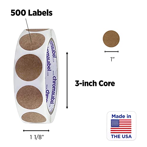 ChromaLabel Adesivi permanenti del punto di Kraft dell'etichetta rotonda, 500 etichette per rotolo, 1"