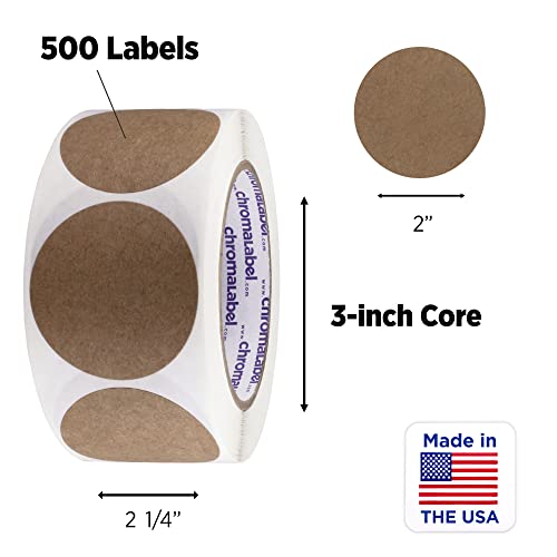 ChromaLabel Adesivi permanenti del punto di Kraft dell'etichetta rotonda, 500 etichette per rotolo, 2"