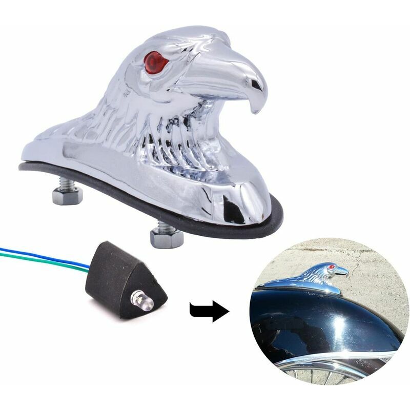 Telaio parafango anteriore per moto e 4x4. . Nome: telaio parafango anteriore moto con luci a LED, materiale telaio: alluminio, altezza: 5,6 cm, lunghezza: 15,5 cm, larghezza: 3,9 cm, peso: 0,020 kg, peso confezione: 0,1 kg .< /p> Si applica a: Honda, Yamaha, Suzuki, Kawasaki, Ducati, Harley Davidson, Triumph, Victory, Aprilia. . Un'aquila scolpita dalla testa con occhi rossi luminosi, alta alluminio di qualità con supporto per parafango/cofano con finitura cromata, conferisce alla tua moto un aspetto nostalgico Tensione di funzionamento: DC 12V. Garanzia di qualità: test rigoroso prima della spedizione. ;