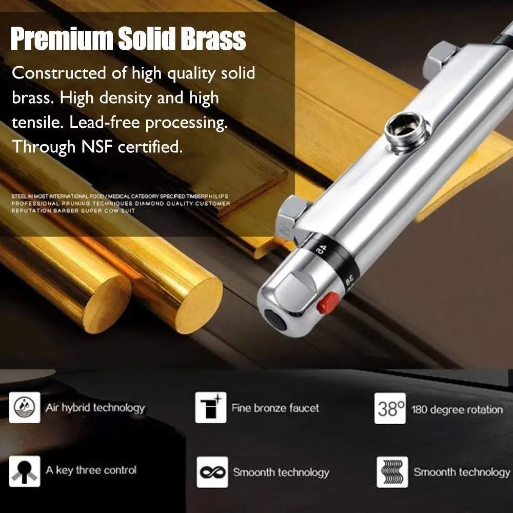 Chrome Thermostatic Bar Shower Mixer Valve Anti Scald Tap