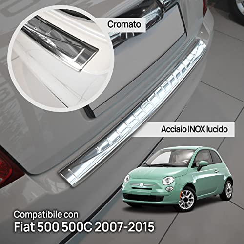 Chromemaster | Protezione paraurti Posteriore | Compatibile con Fiat 500 500C 2007-2015 | Acciaio INOX lucido/cromato | Protezione paraurti protegge la vernice del paraurti dai graffi