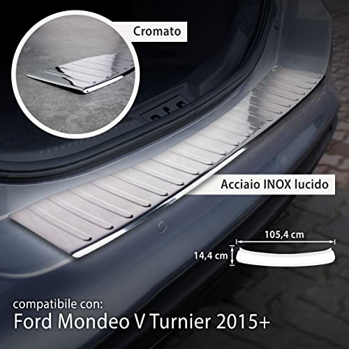 CHROMEMASTER | Protezione paraurti Posteriore | Compatibile con FORD MONDEO V Station Wagon 2015- | Acciaio INOX lucido/Cromato | Protezione paraurti protegge la vernice del paraurti dai graffi