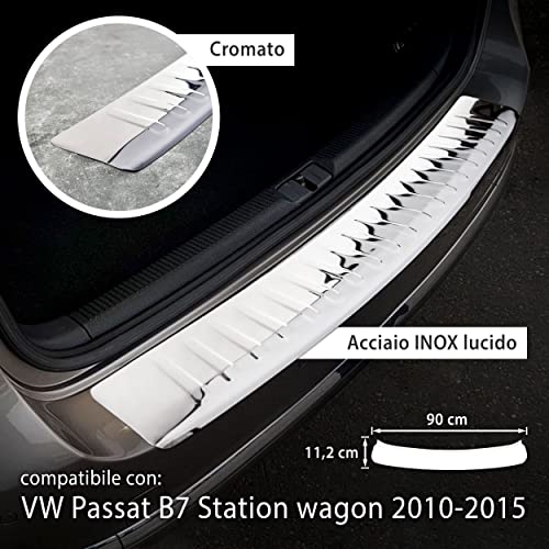 CHROMEMASTER | Protezione paraurti Posteriore | Compatibile con VW PASSAT B7 Station Wagon 2010-2015 | Acciaio INOX lucido/Cromato | Protezione paraurti protegge la vernice del paraurti dai graffi