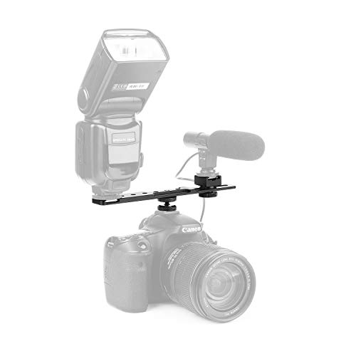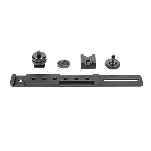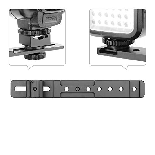 Staffa prolunga universale per allungamento a caldo - Funziona come un supporto per barra di estensione per collegare due impianti contemporaneamente. Collega luci a LED, microfoni, monitor, flash, flash, ecc. Alla fotocamera dslr, DV, supporto per smartphone, stabilizzatore cardanico e qualsiasi rig per fotocamera con foro per vite da 1/4 "o staffa per slitta a caldo.