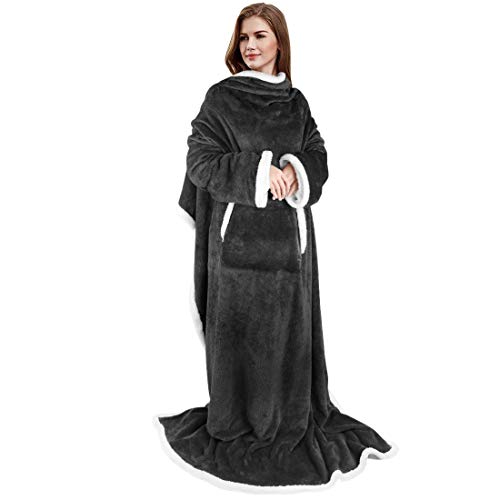Coperta indossabile: coperta foderata in Sherpa con maniche ideali per tenerti al caldo e accogliente mentre guardi la TV, sdraiati sul divano, sul letto, gioca o leggi un libro.
