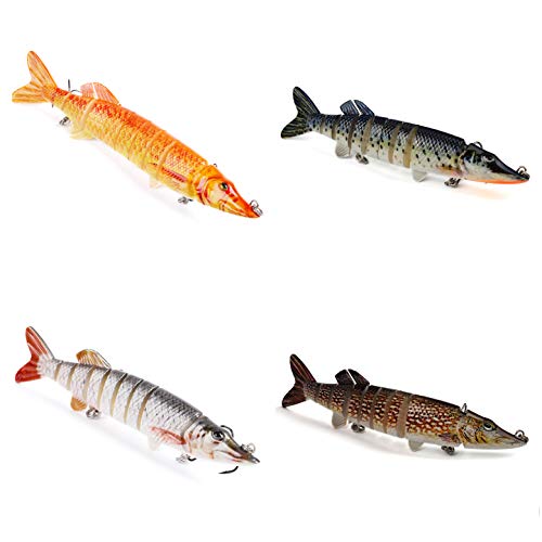 CHSEEO 12.5cm/ 20g Multi-Snodato Esche da Pesca, 4PC Realistico Esca per Pesca Esche Artificiali Swimbait Crankbait Esca Dura Attrezzatura di Pesca Perfetto per Pesca (Colori Casuali) #4