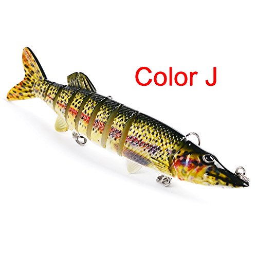 Modelli Estremamente Vivaci: Occhi 3D e dettagli del corpo ad alta risoluzione. I colori brillanti e ad azione rapida sono ideali per la traina o fusione. Il corpo crea azioni di nuoto realistiche, lisce e rapide in acqua per provocare il morso del predatore. Questo multi snodato esche artificiali comprende diversi colori di swimbait.
