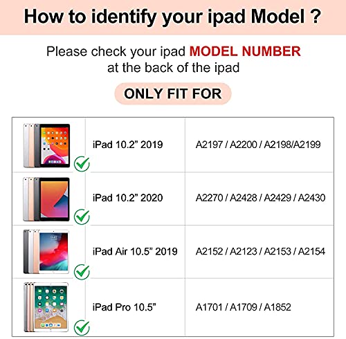 Compatibilità:Appositamente progettato per Apple iPad 10.2" 8th Gen 2020 (A2270/A2428/A2429/A2430), iPad 10.2" 7th Gen 2019 (A2197/A2198/A2200), iPad Air 3 10.5" 2019 (A2123/A2152/A2153/A2154), iPad Pro 10.5" 2017 (A1701/A1709/A1852). Non compatibile con altri modelli di iPad. Si prega di ricontrollare il proprio modello iPad prima dell'acquisto.