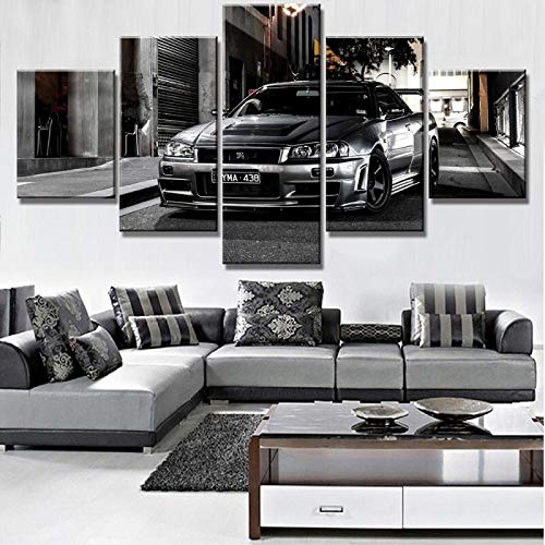 CHUADIAD 5 Pezzi HD Print Large Nissan Skyline GTR Car Modern Decorative Paintings on Canvas Wall Art for Home Decorations Wall Decor-Senza Cornice