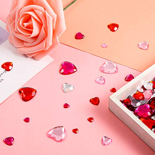 Materiale affidabile: questi strass acrilici a forma di cuore sono realizzati in materiale acrilico di qualità, non facile da sbiadire o rompersi, impermeabile e leggero da usare e riporre, il lato posteriore è piatto e di colore argento, facile per la creazione di gioielli