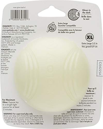 Chuckit! CU200501 Max Glow Ball, la Palla Fosforescente per Cani con Un Diametro di 9 Cm, XL
