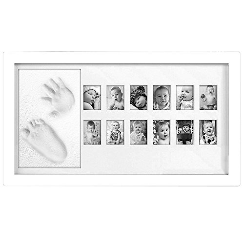 Chuckle - Il mio primo anno - Cornice per 12 mesi - Impronte di mani e impronte di neonati e bambini Argilla non tossica morbida e sicura e cornice in legno di alta qualità Regalo di Natale perfetto