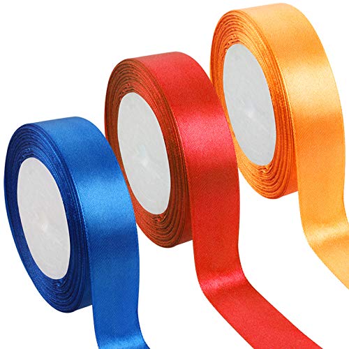 Chudian 3 Pezzi Nastri Colorati per Decorazioni Nastri per Bomboniere Nastri per Regali Fai da Te Nastro di Naso 66m in Totale, Nastri Colorati Rasi di 3 Colori (Blu,Arancione,Rosso)