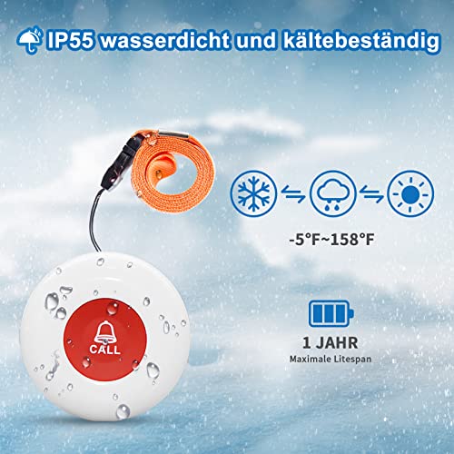 Chunhee Pulsante di Emergenza Allarme Mobile Wireless Suoneria per Infermieristica di Emergenza Anziani 55 Suonerie Gamma di Ricezione 150M Pulsante di Emergenza per Anziani/Pazienti/Gravidanza