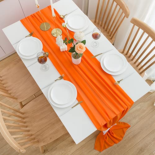 CHUQING - Runner da tavolo in chiffon, colore arancio, per matrimoni e comunioni, moderno, lavabile, 3 m
