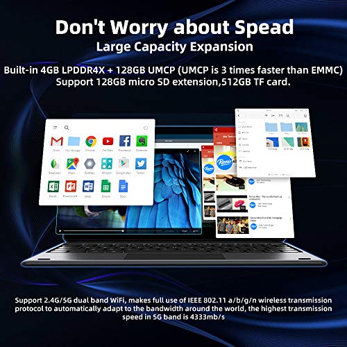 Archiviazione affidabile: salva più foto, video e documenti con 4 GB di memoria LPDDR4X e 128 GB di spazio di archiviazione UMCP. E uno slot per schede microSD può espandere la memoria fino a 128 GB, il che aiuta a mantenere tutti i tuoi file multimediali preferiti insieme a te, come eBook, canzoni, video, foto, musica, ecc.