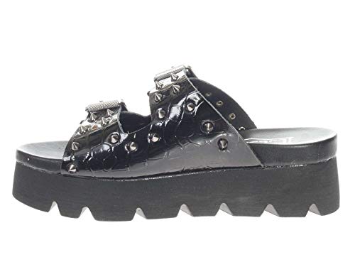 Cult Ciabatta da Donna 103990 in Pelle Nera con Borchie e Doppio Cinturino (39 EU)